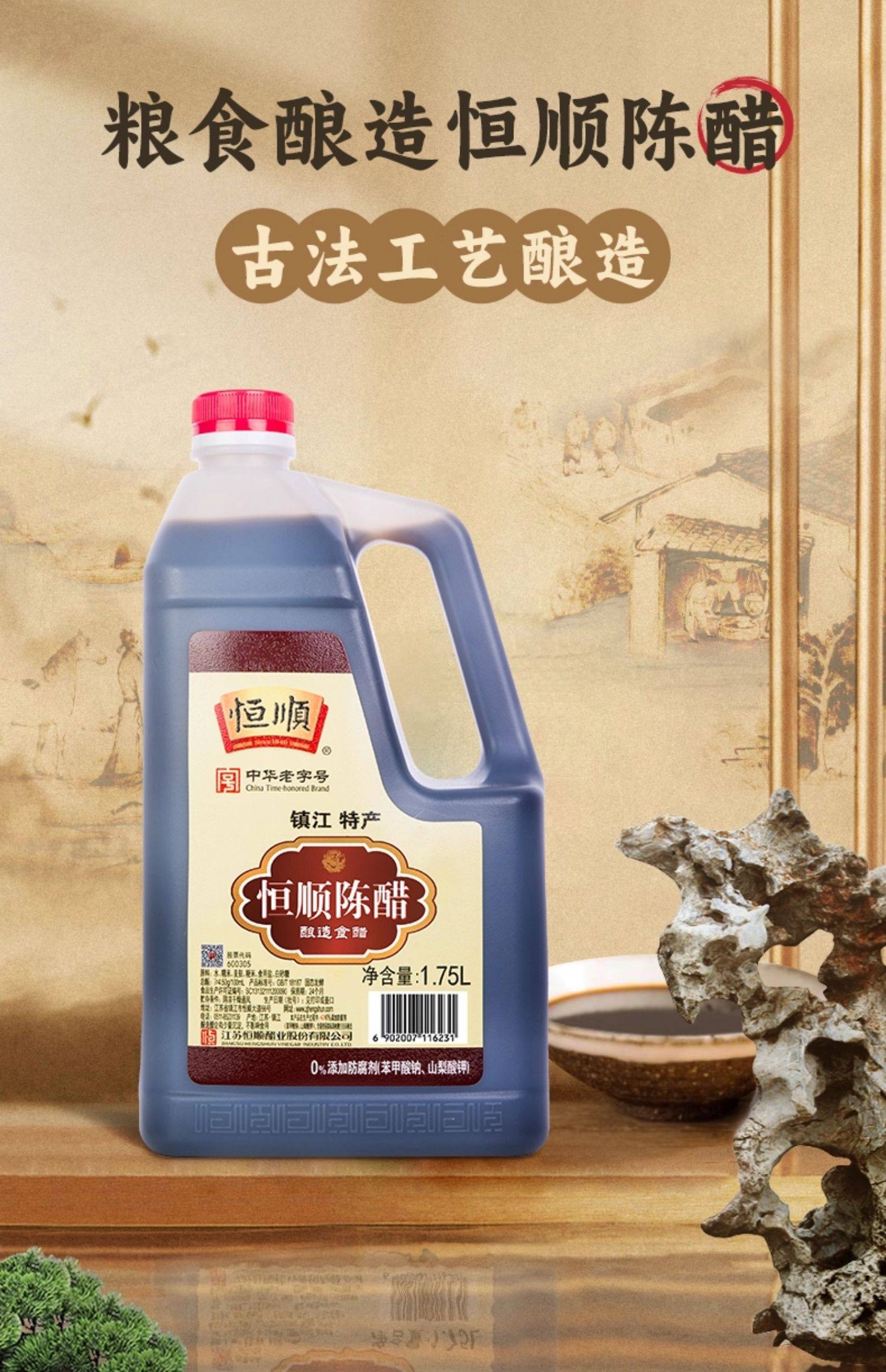 镇江香醋1.75L*2桶恒顺香醋纯粮酿实惠桶装蘸料炒菜商食用醋陈醋